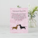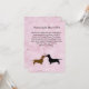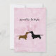 Cartes d'information de réception de mariage sur le thème du chien mignon pour la mariée et le marié, réalisées avec des graphismes sur fond en détresse rose. De jolies silhouettes d'un dachshund brun et d'un dachshund noir, avec des cœurs roses entre eux, décorent le bas de la carte. Tout le texte est personnalisable pour répondre aux besoins de votre événement. Produits assortis disponibles.