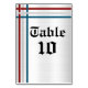 Cartes de table rubans rouges, blancs et bleus pour cartes de numéro de table de parti patriotique ou de parti de retraite. Des rubans simples sur satin blanc semblent arrière - plans.