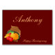 Cartes de table Thanksgiving Brown avec cornucopie et texte personnalisable.