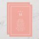 Cette carte de mariage de pêche douillette de la suite Avery est dotée d'un modèle moderne blanc sans serif, d'un cadre délicat à double ligne et d'une disposition aérée. Moderne et minimaliste, l'atmosphère est chaleureuse et romantique pour les mariages contemporains. La carte s'imprime à l'avant et à l'arrière (double face).