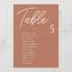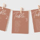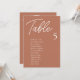 Les cartes de table de Mariage en terre cuite sont la touche finale parfaite pour votre réception de mariage. Guidez vos invités à prendre place sur leur siège grâce à ce tableau unique. Les cartes sont parfaites pour accrocher ou afficher sur un tableau ou un mur. Le design comporte une police de script minimale avec élégant san serif en blanc sur un arrière - plan orange en terre cuite. Le dessin est imprimé sur les deux côtés.