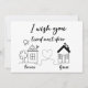 Cette carte tendance présente Deux jolies maisons dessinées à la main de vous et de votre meilleure amie ! Les mots "Je souhaite que vous viviez à côté" apparaissent en écriture moderne noire, et cette carte comporte un nom personnalisable de vous et de votre meilleure amie sur le devant et le dos. Meilleur Cadeau Personnalisé pour Amis à Longue Distance d'État à État.