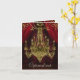 Cartes de vœux bordeaux et or avec un élégant lustre doré sur un magnifique fond de rideau ondulé bordeaux et or. Vous pouvez déplacer ou supprimer le lustre et les volutes à l'intérieur de la carte selon vos besoins. Vous pouvez ajouter le texte de votre choix à l'avant et à l'intérieur dans le style de police que vous préférez.