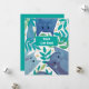 Illustration bleue et verte avec des chats et du feuillage. Bonne fête des pères pour les papas chats. Bonne fête des pères chats !