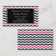 Les cartes de visite modernes et à la mode de chevron comportent les rayures noires et blanches de chevron et deux rayures roses de chevron sur l'avant et le dos et un accent noir encadrent le For Your Information sur l'avant. Tenez-vous avec ces cartes de visite uniques. Perfectionnez pour la variété de types et de professions d'affaires. Disponible en une série de couleurs et stock de carte. Personnaliser avec votre information personnelle ou d'affaires. Cliquez sur la "personnaliser il !" boutonnez pour changer le style de police, la taille des textes, la couleur des textes et les plus !