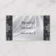 Cartes de visite professionnels de dentelle noire élégante sur l'arrière - plan blanc de satin. Les cartes de visite uniques avec un rétro tissu noir antique vintage de roses de dentelle regardent sur l'avant et sur le dos de la carte prête pour que vous ajoutiez votre information faite sur commande. Le texte noir et beau de manuscrit sur l'avant et sur le dos peut facilement être changé. Perfectionnez pour le décorateur intérieur, le mariage et les affaires nuptiales de robe, l'organisateur, le magasin vintage, et l'habillement, cousant, des affaires de textile de tissu également.
