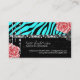 Les roses vintages avec le zèbre impriment - des cartes de visite - créé par Colourful Designs Inc. Copyright 2012 - CDI et des CONCESSEURS. Tout le texte peut être modifié, aussi bien que couleur d'accent. Ayez besoin d'une création en fonction du client ? Ayez une autre couleur à l'esprit ? Ayez besoin de l'aide ? Voulez que je customise quelque chose pour vous ? Contactez-moi chez colourful_designs_inc@hotmail.com. Je répondrai dans un délai de 24 heures, à moins que ce soit le week-end ou des vacances statutaires. Des illustrations qui n'appartiennent pas à Colourful Designs Inc. sont employées légalement avec l'autorisation parlée ou écrite et en achetant l'AUTORISATION COMMERCIALE PROLONGÉE.