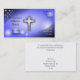 Un carte de visite parfait pour n'importe qui utilisé par une église ou ce offre à l'église. Il comporte une grande croix argentée au milieu avec un arrière - plan bleu. Votre information entre dans les espaces autour de la croix. Sur le dos est un espace pour un passage de bible et les temps d'église. Tout le texte est personnalisable.