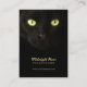 Modèle personnalisable de carte de visite avec le plan rapproché du chat de noir de jais avec de beaux yeux verts. Approprié aux professionnels chez l'animal et le soin des animaux familiers a rapporté les champs ou l'industrie du spectacle, la publicité, les médias, la TV, le cinéma etc.