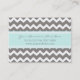 Cartes de visite dans l'amusement et le motif de zigzags de chevron de cru dans le bleu, le blanc et le gris de turquoise en pastel léger moderne. Personnalisable avec vos détails de contact, élégant et contemporain. Contactez-nous pour une couleur faite sur commande.