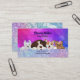 carte de visite coloré, lumineux, créatif, parfait pour de nombreuses entreprises et services liés aux animaux de compagnie, chiens et animaux. Magnifique carte avec logo de chien mignon. design intelligent couleurs pastel doux avec des teintes de violet, bleu et blanc. Parties scintillant brillante arrière - plan, avec un design agréable, frais, propre et professionnel. Grande carte pour le toiletteur de chien, toilettage de chien, garde d'enfant pour chien, garde d'animaux, garde d'animaux, chien thérapie, dresseur de chiens, spécialiste du comportement de chien, randonneur de chien, chuchoteur de chien, vétérinaire, refuge pour chien, refuge pour animaux, manicuriste pour animaux, massothérapeute pour animaux, animal reiki, massothérapeute pour animaux, transport pour animaux de compagnie, mobile, voyage, hôtel pour animaux domestiques nourriture pour animaux de compagnie, nourriture pour chiens, boulangerie pour chiens, boulangerie pour animaux de compagnie, nutritionniste pour animaux de compagnie, magasin d'alimentation pour animaux de compagnie, vêtements pour animaux de compagnie, colliers pour animaux de compagnie, photographe pour animaux de compagnie, agence de talent animal, boutique pour animaux de compagnie et toute entreprise liée aux animaux, animaux de compagnie ou chiens. Ce n'est pas un choix Ruff, choisissez ce design professionnel, rêveur, accrocheur ! Donnez à votre entreprise une grande 1ère impression. Lorsque votre marché et votre réseau avec des clients potentiels, donnez à votre entreprise un look poli et professionnel avec ce grand design carte de visite et slogan. Carte de visite colorée et lumineuse.