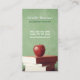 Modèle professionnel de carte de visite pour les maîtres d'école ou les professeurs remplaçants élémentaires comportant le concept classique d'éducation - pomme et livres rouges sur le vert. Personnalisez-le avec votre propre nom et entrez en contact avec l'information ou customisez-la plus loin si vous devez ajuster la disposition, ajouter le texte et les images ou choisir une taille différente de carte de visite.
