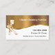 Modèle de carte de visite de service de nettoyage classique, y compris joli symbole de femme de nettoyage couleur or et design or et blanc avec modèle texte facile vous pouvez customiser. Conçu pour une femme de ménage, un service de ménage ou une femme de ménage.