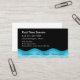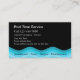 Cartes de visite de service de piscine avec design moderne qui comprend une ligne bleue ondulée représentant l'eau, le style de texte et la disposition que vous pouvez customiser sur les deux côtés, et un design qui est utile pour l'entretien, l'installation, les réparations ou les spas de piscine.