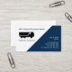 Modèle de carte de visite de service de transport de déchets et de location de bennes dans un design moderne simple qui comprend une image d'un camion à benne et couleur arrière - plan bleu que vous pouvez changer. Conçu comme un modèle de carte de visite pour le service de nettoyage des ordures résidentielles ou commerciales, le débranchement des ordures, la construction et l'immobilier