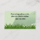 Cartes de visite de soin de pelouse avec une grande photo d'herbe et de disposition facile des textes que vous pouvez customiser en ligne. Perfectionnez pour des thèmes de carte de visite liés au soin de pelouse aménageant en parc ou fondez l'entretien. Vous pouvez également employer ce carte de visite pour le règlage d'arbre ou le service de pelouse.