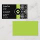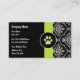 Cartes de visite de soins pour animaux avec empreinte de patte et damask motif, ainsi qu'une belle mise en page de texte vous pouvez customiser maintenant! Parfait pour tout thème carte de visite lié aux chiens, chats, animaux de compagnie, santé des animaux de compagnie, ou vétérinaire.