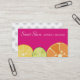 Les agrumes découpent des cartes de visite en tranches pour le boulanger, la cuisson, la boulangerie, le chef de pâtisserie et tout autre chef personnel ou privé, le traiteur ou la restauration, le vendeur de nourriture ou d'autres affaires culinaires. Citron, chaux, et tranches oranges avec des graines sur un arrière - plan de roses indien.