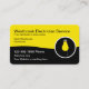 Cartes de visite de service Electricien moderne dans un design unique branché avec emblème d'ampoule à thème électricien et simple disposition vous pouvez customiser en ligne. Conçu pour un électricien agréé, un entrepreneur en électricité ou un professionnel qui effectue des travaux résidentiels ou commerciaux. Imprimé sur un stock carte de visite de haute qualité mat enduit UV.