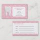 Carte de visite dentaire rose avec dent blanche, avec carte de rendez-vous sur le dos