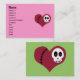 Ce dessin carte de visite de coeur de crâne présente un crâne de dessin animé avec des coeurs dans les yeux sur un coeur rose rougeâtre cousu! Ces cartes sont parfaites pour le réseautage de façon élégante! Customisez-les avec vos coordonnées (adresse e-mail, adresse postale, numéro de téléphone, numéro de cellule ou tout ce que vous voulez !).