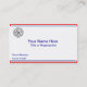 Ce carte de visite est décoré avec le logo du service de santé publique avec des garnitures rouges, blanches et bleues.