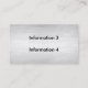 Fascinantes, les paillettes regardent et une plaque signalétique pour votre nom de la société et information fait un grand carte de visite avec un 3d regarder. Facilement personnaliser avec votre propre information. Changez également, facilement le style de police et le colorez. Plus d'information peut être aussi bien mise sur le dos sur l'arrière - plan lisse en métal. Grande carte pour le divertissement et les industries musicales et la partie et les organisateurs, les jockeys de disque, etc. imprimés sur le papier, métal non réel. Un carte de visite fort et frais avec un regard d'amusement qui se tient du repos.