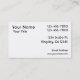 Carte de visite, taille : États-Unis : 8,9 cm x 5,1 cm, papier : Standard Semi-brillant, coins : Carré