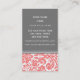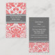 Cartes de visite dans le motif floral élégant et vintage de damassé dans le rose orange, le blanc et le gris de pêche moderne. Personnalisable avec vos détails de contact, élégant et contemporain. Contactez-nous pour une couleur faite sur commande.