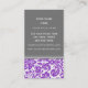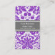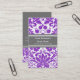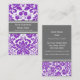 Cartes de visite dans le motif floral élégant et vintage de damassé dans le pourpre, le blanc et le gris lumineux modernes. Personnalisable avec vos détails de contact, élégant et contemporain. Contactez-nous pour une couleur faite sur commande.