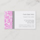 Cartes de visite dans le motif floral élégant et vintage de damassé dans des roses pâles, le blanc et le gris lumineux modernes. Personnalisable avec vos détails de contact, élégant et contemporain. Contactez-nous pour une couleur faite sur commande.