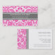 Cartes de visite dans le motif floral élégant et vintage de damassé dans des roses indien, le blanc et le gris fuchsia lumineux modernes. Personnalisable avec vos détails de contact, élégant et contemporain. Contactez-nous pour une couleur faite sur commande.