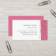 Les cartes de visite modernes et élégants disposent d'une bordure droite de lignes géométriques croisées en noir croustillant avec une couche inférieure en bloc coloré de rose pâle. Ajoutez votre nom et titre/profession/entreprise et trois lignes de contact. Cartes inversées à rose framboise solide avec votre nom ou nom d'entreprise mis en évidence au centre.