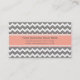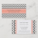 Cartes de visite dans l'amusement et le motif de rayures de zigzags de chevron de cru dans le rose, le blanc et le gris oranges de corail modernes. Personnalisable avec vos détails de contact, élégant et contemporain. Contactez-nous pour une couleur faite sur commande.
