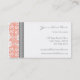 Cartes de visite dans le motif vintage floral classique de rose de pêche élégante et moderne, gris et blanc orange de damassé. Personnalisable avec vos détails de contact, élégant et féminin.
