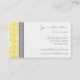 Cartes de visite dans le motif vintage floral classique jaune canari lumineux élégant et moderne de jaune, gris et blanc de damassé. Personnalisable avec vos détails de contact, élégant et féminin.