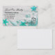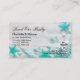 Beaux cartes de visite immobiliers à thème de plage conçus avec des coquillages sur le graphique de la plage, un symbole maison, et espace texte modifiable vous pouvez organiser et personnaliser votre façon. Conçu comme un modèle de carte de visite pour un thème de propriété Realtor, broker ou front de mer en bleu turquoise, blanc et vert.