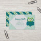 Ces cartes de visite mignons de hibou de turquoise comportent une turquoise ou un hibou vert turquoise au-dessus d'un arrière - plan barré par amusement ! Ces cartes de visite mignons de hibou sont sûrs de laisser une impression durable et sont parfaits pour n'importe qui qui aime des hiboux et l'art mignon ! Des images créées par Josy Carson, chute et tubes et Dana Conditt de Zaza de digitalscrapdesigns.com et sont employées avec l'autorisation.