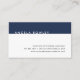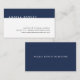 Le design moderne et épuré est minimaliste, dans un style bleu marine et blanc immaculé. Les cartes de visite affichent votre nom en blanc sur une bande de bleu marine, avec trois lignes d'information de contact en bas à droite. Cartes inversées à bleu marine solide avec votre nom ou choix de texte personnalisé centré dans le lettrage blanc moderne.