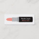 Un carte de visite moderne et contemporain qui a une conception d'un rouge à lèvres avec l'espace sur le bâton pour la personnalisation des détails. La couleur du rouge à lèvres est à une nuance orange couleur pêche légère. Cette conception de carte de visite mince et lisse est grande pour des maquilleurs, des stylistes et ceux dans les entreprises de beauté. Personnalisez facilement avec vos détails d'affaires.