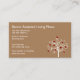 Cartes de visite à thème vivant assisté conçu avec un bel arbre de vie graphique avec des symboles du coeur représentant prendre soin de ceux qui sont dans le besoin. Créé pour un établissement médical pour personnes âgées, une vie assistée ou une vie à la retraite.
