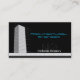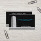 Cartes de visite dégrossis de génie architectural du professionnel 2 avec un dessin de perspective de base de gratte-ciel au-dessus de noir avec le texte bleu et blanc avec une conception de règle sur le fond des deux côtés. NOTE : Bien que la règle au fond soit étroitement conçue pour sembler vraie, les mesures peuvent ne pas être 100% précis à une vraie règle en raison de légères variations d'impression/emblavage.