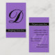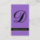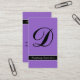 Cartes de visite noir violet monogramme exceptionnel, avec votre monogramme dans une police élégante en noir sur arrière - plan violet. Cartes de visite à l'allure professionnelle moderne avec un agencement élégant parfait pour un manager, designer, investisseur, courtier, vendeur, ingénieur, comptable, consultant financier, assurance, éditeur, traducteur, annonceur, commis et plus encore.