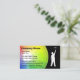 Cartes de visite peintre avec arrière - plan de roue coloré dans un arc-en-ciel de couleurs, avec un peintre avec un rouleau de peinture et disposition de texte qui est facile à customiser. Meilleurs cartes de visite pour des thèmes liés à la peinture de maison, l'entrepreneur de peinture, peintre commercial, ou les revêtements et fournitures de peinture.