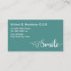 Laissez ce carte de visite dentiste représenter votre cabinet dentaire ou votre clinique de façon professionnelle. Conçu avec un graphisme souriant unique et tendance qui comprend une dent et le mot sourire dans un style de script élégant. Créé en tant que carte de visite pour le personnel de bureau, les dentistes ou les cabinets dentaires de groupe.