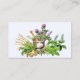 Modèle de carte de visite pour herboriste, naturopathe ou apothicaire. Des groupes d'herbes médicinales sont présentés au recto et au verso. Couleur violet pâle avec texte jaune-vert à personnaliser à trois endroits au recto. Incluez le nom de l'entreprise en caractères gras en haut. Ajoutez un nom en écriture en dessous, avec plus de texte imprimé pour les coordonnées, le site web, les réseaux sociaux et / ou l'adresse. Tout le texte est aligné à droite. Les herbes sont l'ashwagandha, le curcuma et le gingembre au recto avec davantage d'herbes au verso.
