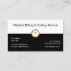 Modèle classique de facturation médicale et de codage de carte de visite avec un symbole médical de couleur or dans un look haut de gamme et agencement organisé pour le secteur de la santé fournissant des services pour les hôpitaux, les cabinets de médecins et les cliniques médicales.