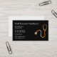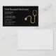 Modèle design carte de visite à thème de soins de santé classique créé avec un stéthoscope à teinte dorée qui ajoute une touche haut de gamme et une disposition carte de visite classique que vous pouvez customiser en ligne.