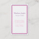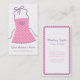 Un carte de visite élégant et à la mode avec un tablier rose avec le pois blanc. La conception approprié aux entreprises dans la nourriture et la boisson comme des restaurants, des cafés, des chefs et des cuisiniers personnels, des boulangeries, des pâtisseries, diner et des entreprises de restauration. Personnalisez facilement avec vos détails d'affaires. Palette de couleur d'approprié rose et pourpre aux entrepreneurs qui sont des filles ou des entreprises qui visent un clientèle femelle.