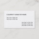 Modèle simple simple de cartes de visite dans une conception générale qui inclut l'espace pour votre information de société ou de nom, de contact et d'affaires, et couleur blanche d'arrière - plan que vous pouvez changer. Organisez les gisements des textes votre propre manière et faites à ceci vos propres. Inclut l'impression bilatérale.